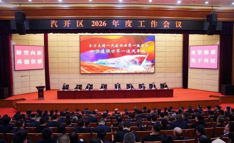 围绕2026年工作,汽开区将全力以赴强工业、坚定不移建体系、精准发力促招商、多措并举抓项目、持之以恒惠民生,聚焦六大重点,按下转型升级“快进键”:聚焦稳中求进总基调,稳住工业大盘、抓好项目投资、激发消费动力;聚焦转型升级主方向,加快主导产业转型、加快先进制造业布局、加快服务业升级;聚焦福祉增进落脚点,提升医疗、教育、养老等功能配套,加快推进城市更新,积极回应群众诉求;聚焦安全稳定基本盘,从严抓好安全生产、持续维护社会和谐稳定、坚定不移加强生态环保;聚焦财政运转硬支撑,全面盘活资产、推动国企改革攻坚、加快土地出让、积极争取土储债额度;聚焦自身建设软实力,树牢服务意识、提高落实效能、强化规范建设。